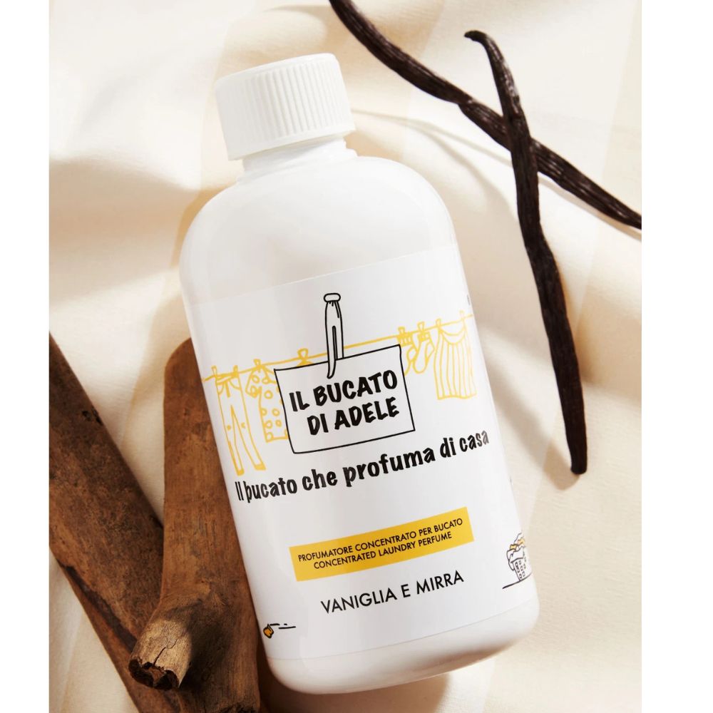 Vaniglia e Mirra is een warme en kostbare geur die de zintuigen omhult met rijke, aromatische tonen. De verfijnde combinatie van zoete en kruidige accenten zorgt voor een elegante geur die rust en comfort uitstraalt en je kleding en textiel langdurig heerlijk laat geuren. â¨